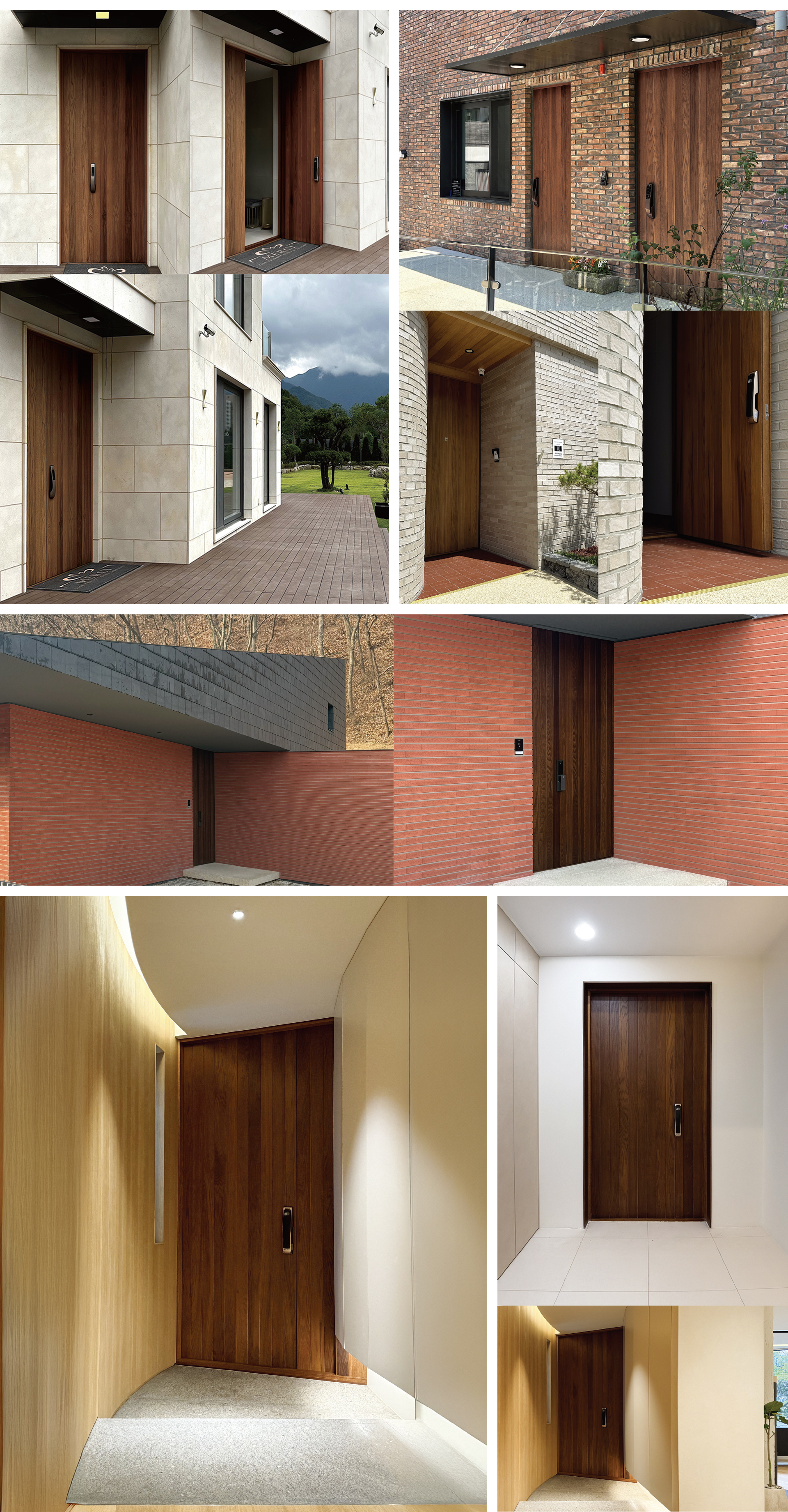 원목 특유의 따뜻함과 모던함 디자인이 잘 어우러진 최고급 원목 단열 현관문입니다.